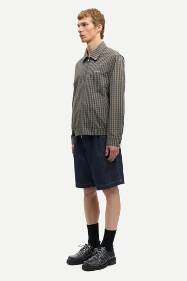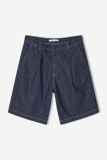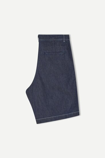 Denim shorts with a regular fit and straight leg. Button and zip closure on the front. Side slit pockets on the front and single welt pocket on the back. Main material made from a blend of cotton and linen. Main material: 67% Cotton, 23% Linen, 10% Polybutylene,